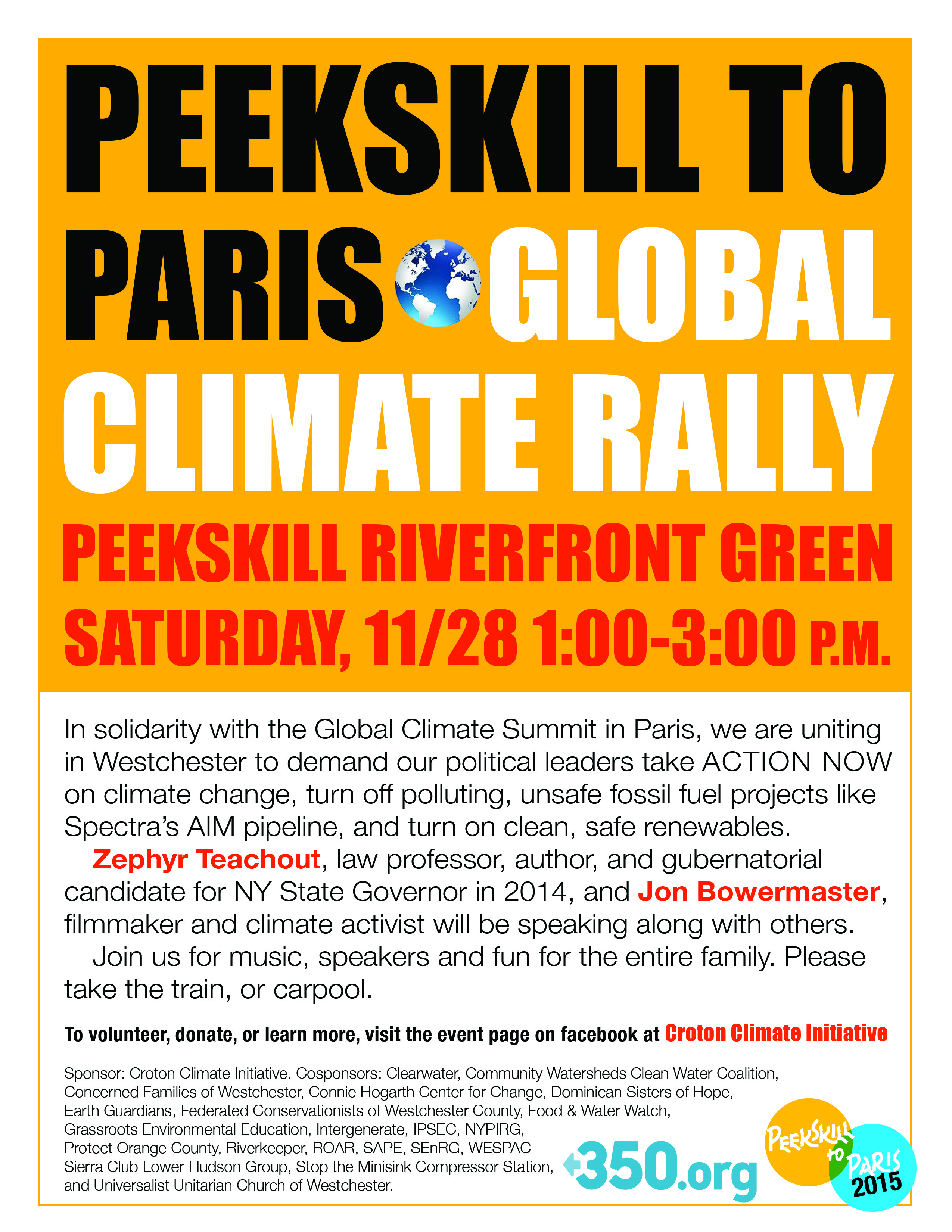 Cosponsors: Connie Hogarth Center for Social Action, Grassroots Environmental Education, Manhattanville College, ResistAIM, Rockland Water Coalition, Sierra Club Lower Hudson Group, Safe Energy Rights Group (SEnRG), Stop the Algonquin Pipeline Expansion (SAPE) and WESPAC
