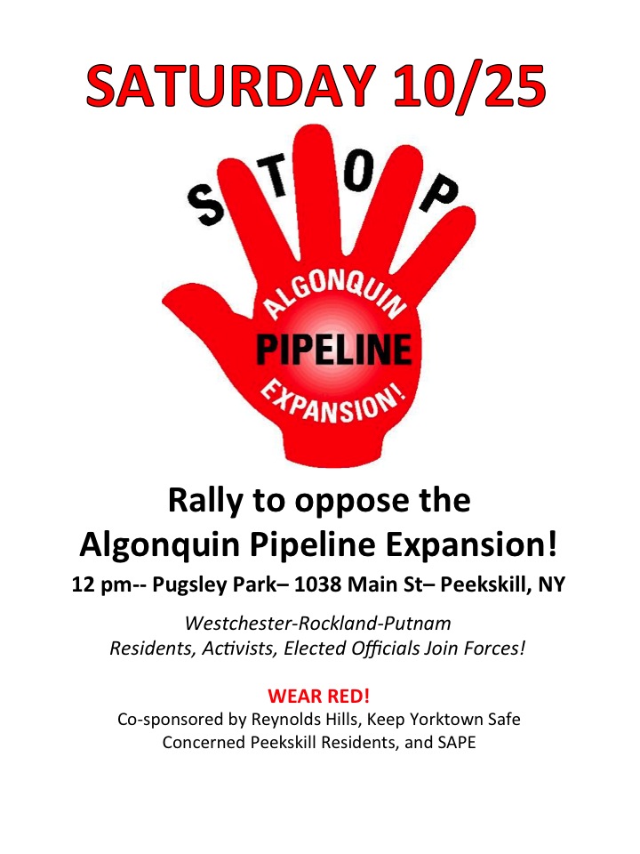 Co-sponosred by the Reynolds Hills, Concerned Peekskill Residents (CPR), Keep Yorktown Safe (KYS) and Stop the Algonquin Pipeline Expansion (SAPE)