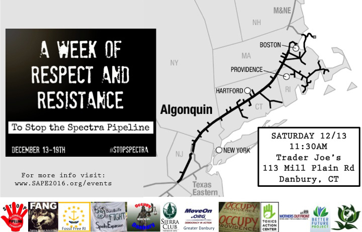 (Burrillville, RI; Danbury, CT; West Roxbury, MA) Grassroots groups from four states along the proposed route for Spectra’s Algonquin Incremental Market (AIM) pipeline expansion, which cuts through New York, Connecticut, Massachusetts, and Rhode Island, have joined together to host a coordinated “Week of Respect and Resistance”, with actions from December 13 – December 19 in opposition to the project.