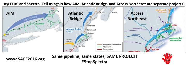 Susan Van Dolsen of SAPE in NY said, “Individual groups have been organizing tirelessly in our respective areas by talking to legislators and state agencies, and we are now coming together to emphasize that this is one pipeline project, four states, one loud collective voice saying ‘Stop the Spectra Algonquin pipeline expansion!’”